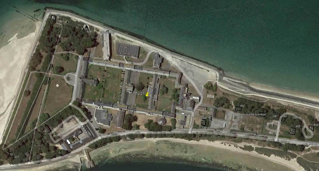 Le site, en forme de presqu’ile sur lequel se trouvent ces ouvrages est occupé par un sanatorium crée en 1887 dans les bâtiments d’une ancienne conserverie.