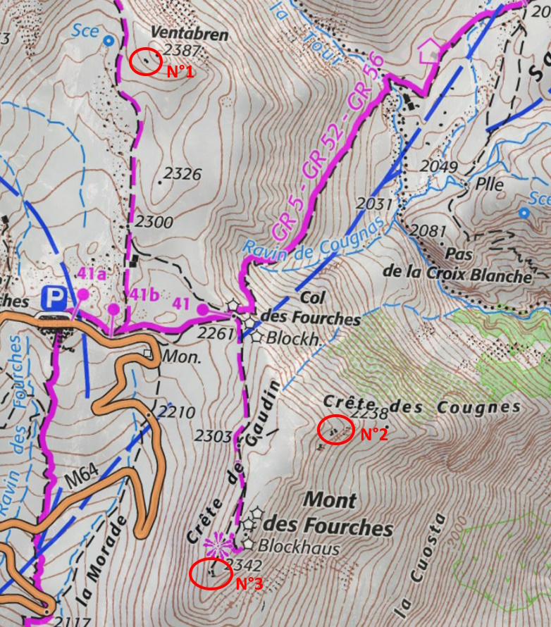 La construction de ces ouvrages est décidée après 1889, où la crête des Fourches est dans un premier temps organisé pour des batteries de montagne avant qu’un 1er ouvrage soit construit (1897 -1898) à 2356 m d’altitude, au niveau d’où sera coulé le « bloc de Ventabren » en 1939.